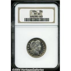 <table><tbody><tr><td><table> <TR><TD width="100%"><TABLE cellSpacing=1 cellPadding=3 width="100%" border=0><TBODY><TR><TD width="100%" bgColor=#79735c><FONT face=arial color=#ffffff size=3><B>Description</B> </FONT></TD></TR><TR><TD width="100%" bgColor=#ffffff><FONT face=arial size=2><B>1894 25C PR65 NGC.</B></I> A beautifully preserved specimen with soft golden toning at the margins. Both sides are deeply mirrored in the fields, with devices that are well frosted and yield a pleasing two-toned effect. </FONT></TD></TR></TBODY></TABLE></TD></TR></TBODY></TABLE><BR><A name=PricesRealized></A><TABLE cellSpacing=0 cellPadding=0 width="100%" bgColor=#000000 border=0><TBODY><TR><TD width="100%"><TABLE cellSpacing=1 cellPadding=3 width="100%" border=0><TBODY><TR><TD width="100%" bgColor=#79735c><A name=PR><FONT face=arial color=#ffffff size=3><B>Previous Prices from Heritage Auctions</B> </FONT></A></TD></TR><TR><TD bgColor=#f6f6ed><TABLE cellSpacing=0 cellPadding=0 width="100%" border=1><TBODY><TR><TD align=middle width="33%"><B>Date</B></TD><TD align=middle width="33%"><B>Service</B></TD><TD align=middle width="33%"><B>Price</B></TD></TR><TR bgColor=whitesmoke><TD width="33%"><B>02/24/2002</B></TD><TD width="33%">PCGS</TD><TD width="33%">$1,006.25</TD></TR><TR bgColor=whitesmoke><TD width="33%"><B>06/10/2000</B></TD><TD width="33%">PCGS</TD><TD width="33%">$1,523.75</TD></TR><TR bgColor=whitesmoke><TD width="33%"><B>01/11/1997</B></TD><TD width="33%">NGC</TD><TD width="33%">$1,035.00</TD></TR><TR bgColor=whitesmoke><TD width="33%"><B>09/01/1997</B></TD><TD width="33%">NGC</TD><TD width="33%">$935.00</TD></TR></TBODY></TABLE></TD></TR><TR><TD bgColor=#ffffff><FONT face=arial size=1 ?>PLEASE NOTE: All prices realized reflect the final hammer price PLUS the buyer's premium in auctions that charge a buyer's premium. Each item has a notation at the top of the listing indicating whether that lot included a buyer's premium. Example: A item that sells with a final hammer price of $100 and a 20% buyer's premium will display with a price realized of $120. All information listed is intended to be as accurate as possible, but errors are possible. Please use this guide carefully and inform us of any inaccuracies. </FONT></TD></TR></TBODY></TABLE></TD></TR></TBODY></TABLE><BR><TABLE cellSpacing=0 cellPadding=0 width="100%" bgColor=#000000 border=0><TBODY><TR><TD width="100%"><TABLE cellSpacing=1 cellPadding=3 width="100%" border=0><TBODY><TR><TD width="100%" bgColor=#79735c colSpan=6><FONT face=arial color=#ffffff size=3><B>Price Guide*</B> </FONT></TD></TR><TR bgColor=#f6f6ed><TD align=middle><B>Grade</B> </TD><TD align=middle><B>Coin World<BR>(Trends)</B> </TD><TD align=middle><B>Numismedia<BR>Retail</B> </TD><TD align=middle><B>Numismedia<BR>Wholesale</B> </TD><TD align=middle><B>Coin<BR>Universe</B> </TD><TD align=middle><B>Heritage<BR>Value Index</B> </TD></TR><TR bgColor=#ffffff><TD align=middle>64</TD><TD align=right>---</TD><TD align=right>$970.00</TD><TD align=right>$775.00</TD><TD align=right>$950.00</TD><TD align=right>$633.83</TD></TR><TR style="FONT-WEIGHT: bold" bgColor=#cccfdd><TD align=middle>65</TD><TD align=right>---</TD><TD align=right>---</TD><TD align=right>$1,500.00</TD><TD align=right>$2,000.00</TD><TD align=right>$1,605.67</TD></TR><TR bgColor=#ffffff><TD align=middle>66</TD><TD align=right>---</TD><TD align=right>---</TD><TD align=right>$2,250.00</TD><TD align=right>$3,350.00</TD><TD align=right>$2,197.50</TD></TR><TR bgColor=#ffffff><TD colSpan=6><FONT size=1>*All information listed is intended to be as accurate as possible, but errors are possible. No item may be returned or refused based on this information which is provided as a service to our customers. You should contact each pricing source directly to determine the accuracy of this information. </FONT></TD></TR></TBODY></TABLE></TD></TR></TBODY></TABLE><BR><TABLE cellSpacing=0 cellPadding=0 width="100%" bgColor=#000000 border=0><TBODY><TR><TD width="100%"><TABLE cellSpacing=1 cellPadding=3 width="100%" border=0><TBODY><TR><TD width="100%" bgColor=#79735c><FONT face=arial color=#ffffff size=3><B>Population Guide</B> </FONT></TD></TR><TR bgColor=#ffffff><TD align=middle><!-- Begin Output of Population Grid--><TABLE cellSpacing=0 cellPadding=0 width="100%" border=0><TBODY><TR><TD vAlign=center><TABLE cellSpacing=0 width="100%" border=1 cellsadding="3"><TBODY><TR><TD vAlign=center><TABLE cellSpacing=0 cellPadding=3 width="100%" border=1><TBODY><TR><TD vAlign=center align=middle bgColor=#f0f1e8 colSpan=2 <CENTER><FONT face=Arial size=2><B>PCGS Pop </B></FONT><CENTER></CENTER></TD><TD vAlign=center align=middle bgColor=#f0f1e8 colSpan=2><CENTER><FONT face=Arial size=2><B>NGC Pop</B></CENTER></FONT></TD></TR><TR><TD vAlign=center><FONT face=Arial size=2>(65)</FONT> </TD><TD vAlign=center align=right><FONT face=Arial size=2>46</FONT> </TD><TD vAlign=center><FONT face=Arial size=2>(65)</FONT> </TD><TD vAlign=center align=right><FONT face=Arial size=2>57</FONT> </TD></TR><TR><TD vAlign=center><FONT face=Arial size=2>(>65)</FONT> </TD><TD vAlign=center align=right><FONT face=Arial size=2>28</FONT> </TD><TD vAlign=center><FONT face=Arial size=2>(>65)</FONT> </TD><TD vAlign=center align=right><FONT face=Arial size=2>54</FONT> </TD></TR></TBODY></TABLE></TD></TR></TBODY></TABLE></TD></TR></TBODY></TABLE><!-- End Output of Population Grid--></TD></TR></TBODY></TABLE></TD></TR></TBODY></TABLE><BR><TABLE cellSpacing=0 cellPadding=0 width="100%" bgColor=#000000 border=0><TBODY><TR> <font color='#000000'><span style='background-color: #FFFFFF'><td bgcolor='#FFFFFE'> Important notice: Heritage usually auctions material at the rate of 200-250 lots per hour. On some occasions eBay Live bid software or the Internet may not be able to keep up with the pace of the auction. We recommend placing a realistic absentee bid now as insurance to avoid disappointment. Occasionally the auctioneer may eliminate or reject an eBay Live bid, and the auctioneer