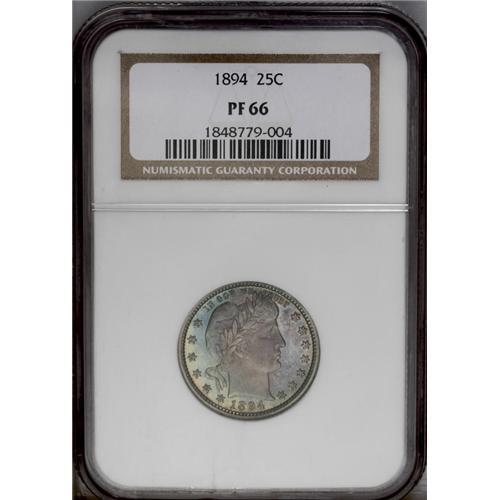 1894 25C PR66 NGC. Warm red-violet toning covers much