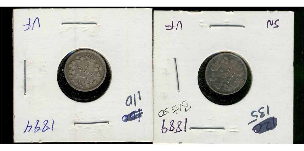 1894 5¢ & 1889. Lot of 2 coins F+ to VF for grade.