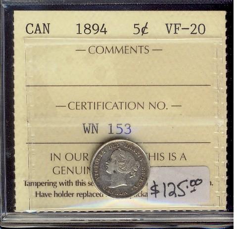1894 5¢ ICCS VF20