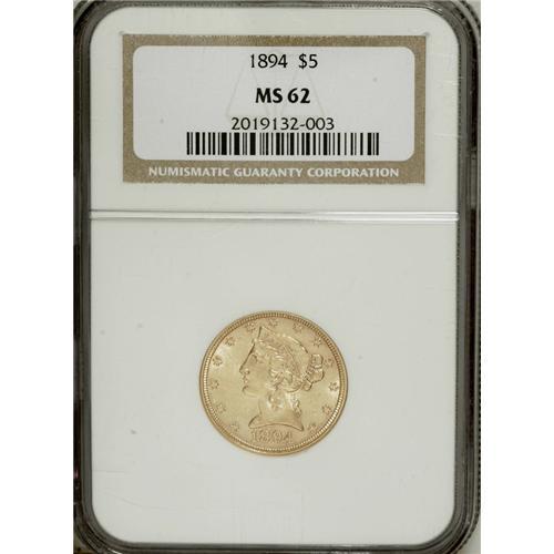 1894 $5 MS62 NGC. NGC Census: (758/499). PCGS Popu