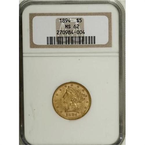 1894 $5 MS62 NGC. NGC Census: (763/502). PCGS Popu