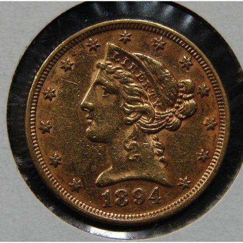 1894 $5 U.S. LIBERTY GOLD COIN.