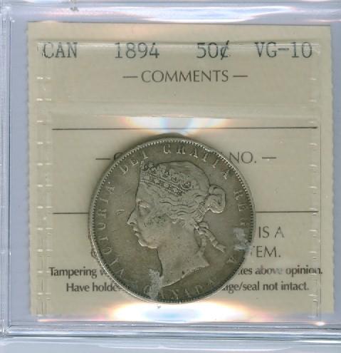 1894 50¢ ICCS VG10. Key issue. Undergraded. Looks like F12.