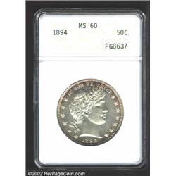 1894 50C MS60 ANACS. A well struck and mildly prooflike coin that has attractive electric-blue and r