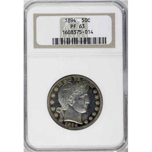 <B>1894 50C PR63 NGC.</B></I> The frost of the devices hints at past contrast, though the gold-gray and blue-green patina over the fields annuls the coin's innate cameo effect. Well-defined with tiny points of contact on and near the portrait.<BR><BR><B>Coin Engraver:</B> Charles E. Barber<BR><BR><b>Shipping:</b> Coins & Currency (<a target="_blank" href="http://www.heritageauctions.com/common/shipping.php">view shipping information</a>)