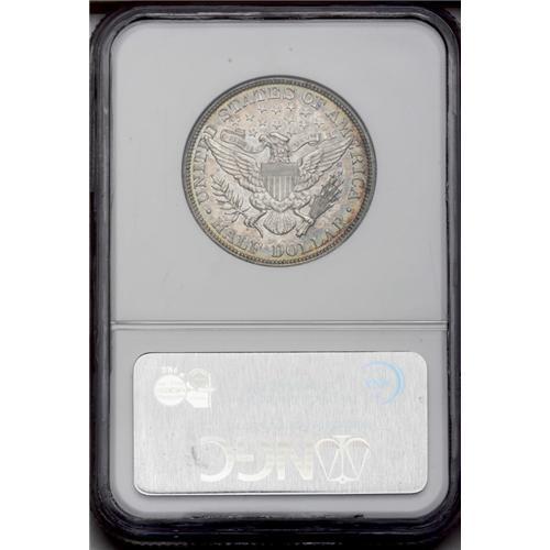 <B>1894<50C> PR64 NGC.</B></I> Well mirrored in the fields, the devices show a light but noticeable presence of mint luster. The contrast between the fields and devices is noticeable, but not quite enough for a Cameo designation, most likely because of the dampening effect of the pastel toning that covers each side.