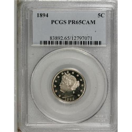 <B>1894 5C PR65 Cameo PCGS.</B></I> PCGS Population (7/16). NGC Census: (9/10). (#83892)<BR><BR><b>Shipping:</b> Coins & Currency (<a target="_blank" href="http://www.heritageauctions.com/common/shipping.php">view shipping information</a>)