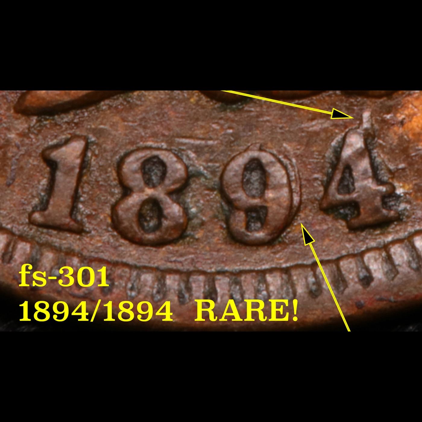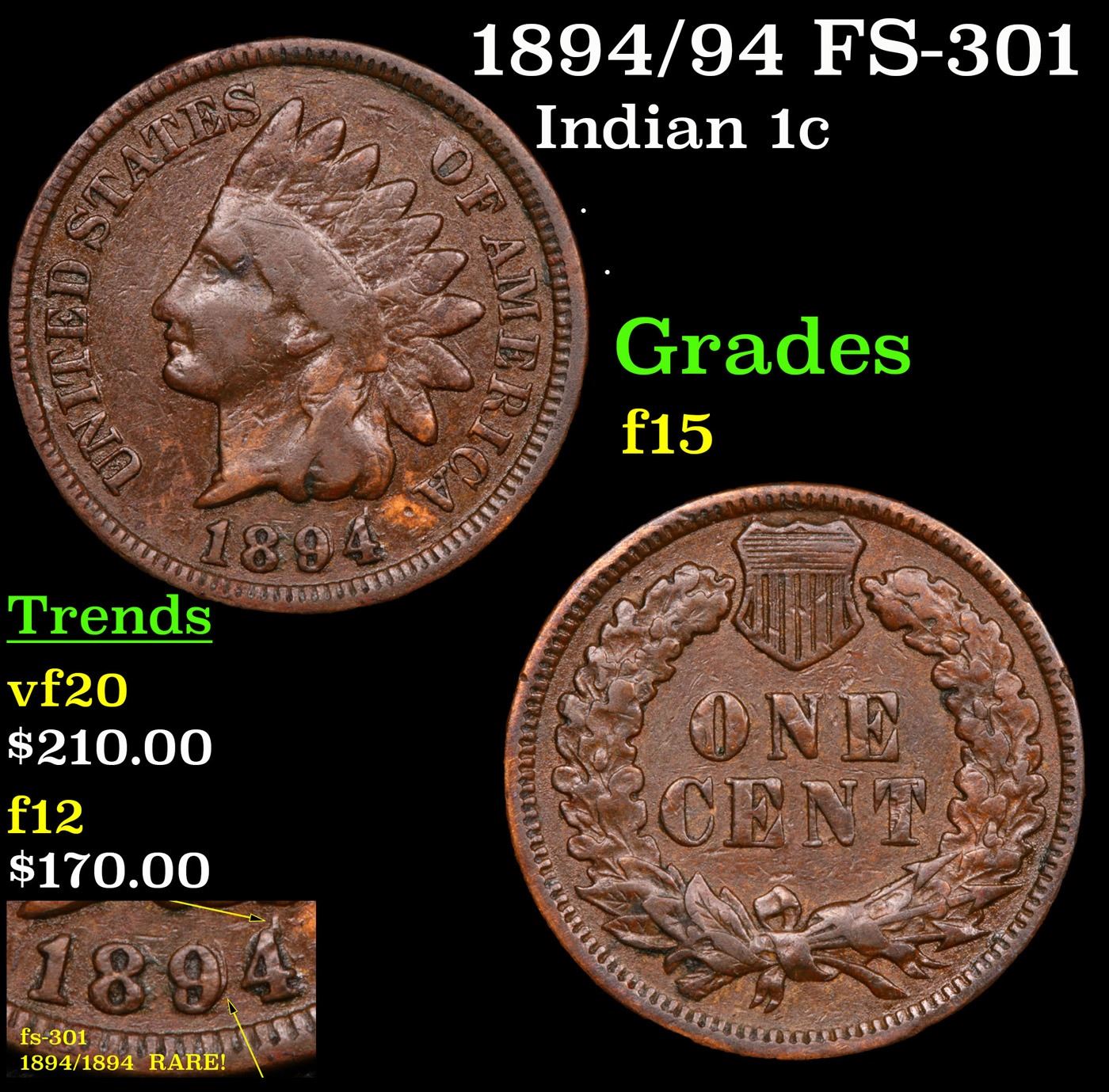 1894/94 FS-301 Indian Cent 1c Grades f+.