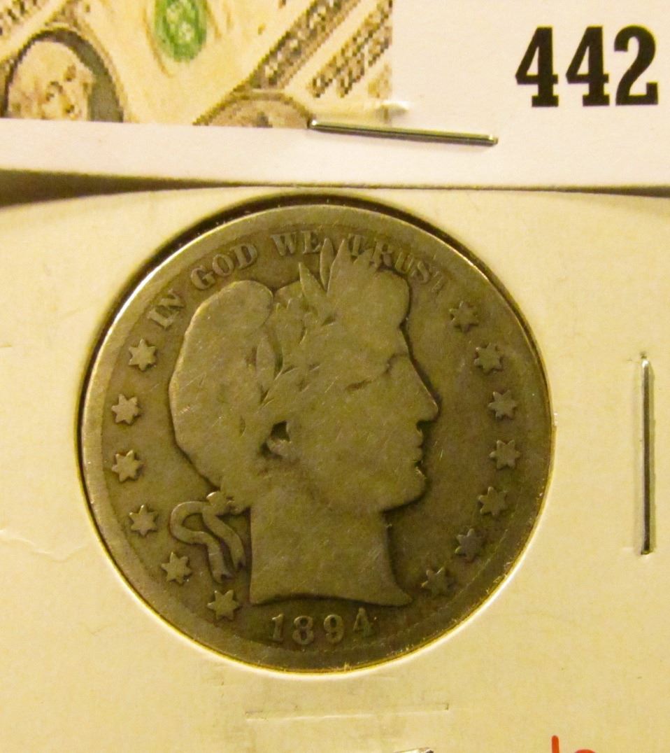 1894 Barber Half Dollar, G, value $22