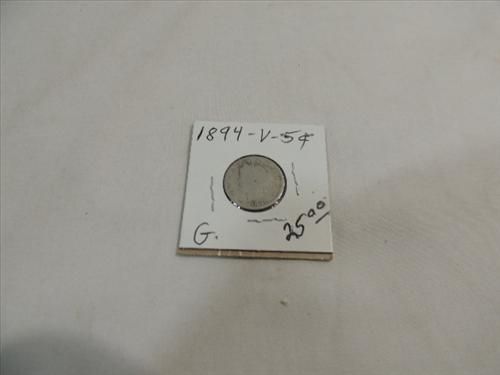1894 CIRCULATED 5 CENT V-NICKEL. AS SHOWN. VIEW PICTURE FOR DETAIL.