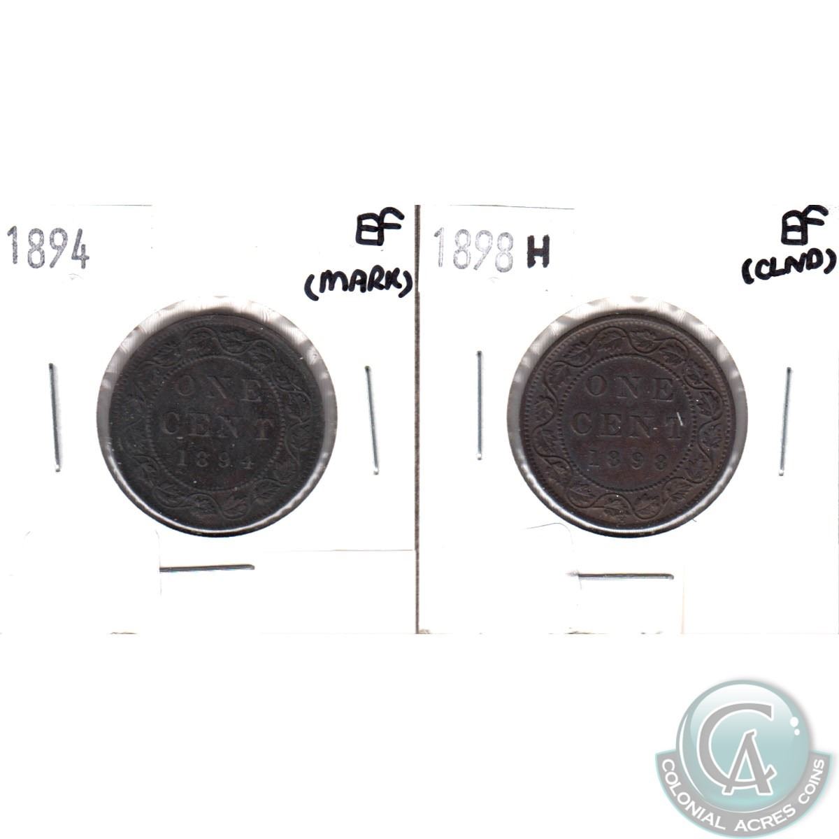 1894 Canada 1-cent Extra Fine (Mark) & 1898H Canada 1-cent EF (cleaned) 2pcs