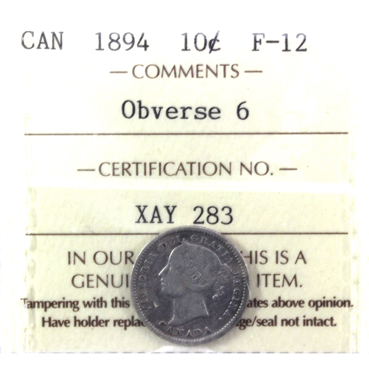 1894 Canada 10-cent Obverse 6 ICCS Certified F-12.