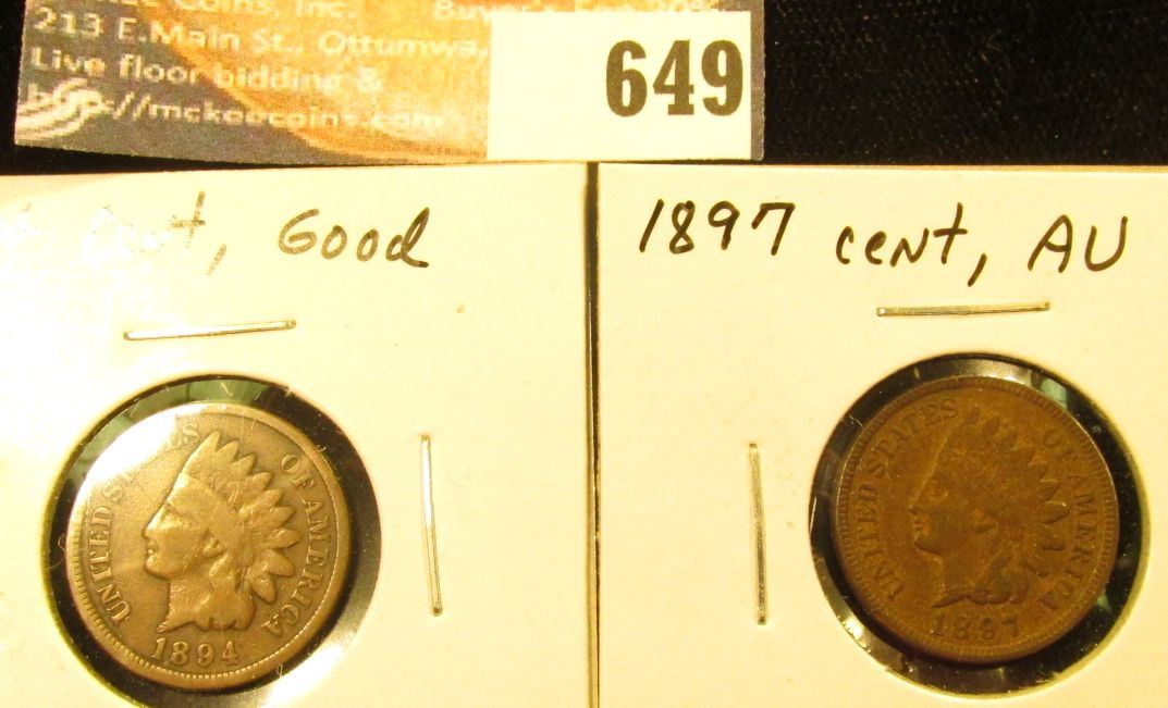1894, G and 1897, AU Indian Head Cents.