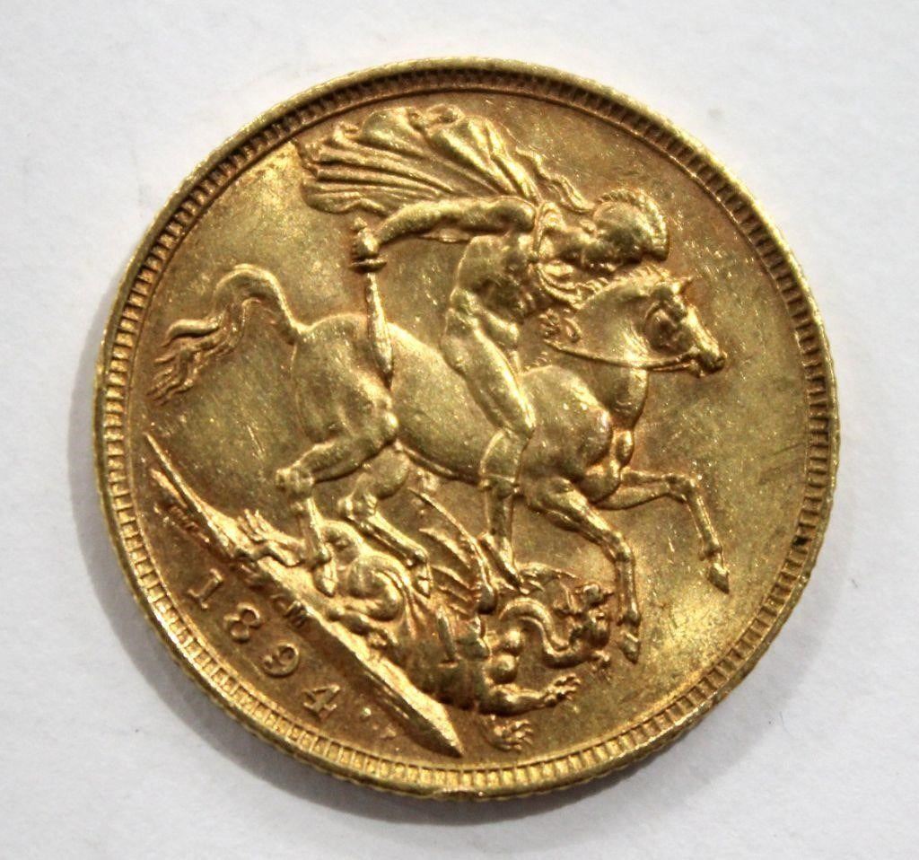 A 1894 Gold British Sovereign in Choice BU Uncirculated condition. The early New Queen design are always popular. Very nice orange peel luster..2355 AGW