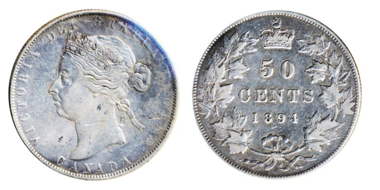 1894. ICCS Very Fine-20. A ‘key’ date of the Victorian series. A few marks on the neck and obverse field. Light to medium heavy toning.