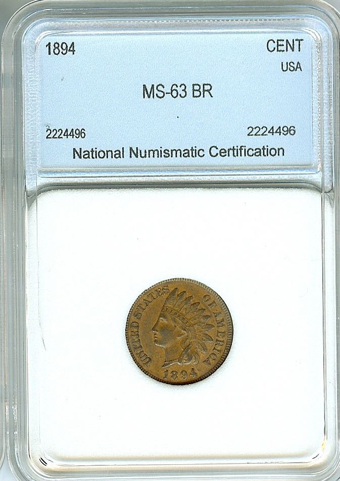 1894 INDIAN HEAD CENT NNC MS-63 BROWN