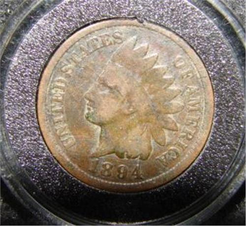 1894 U.S. INDIAN HEAD CENT. Coin is in circular case.