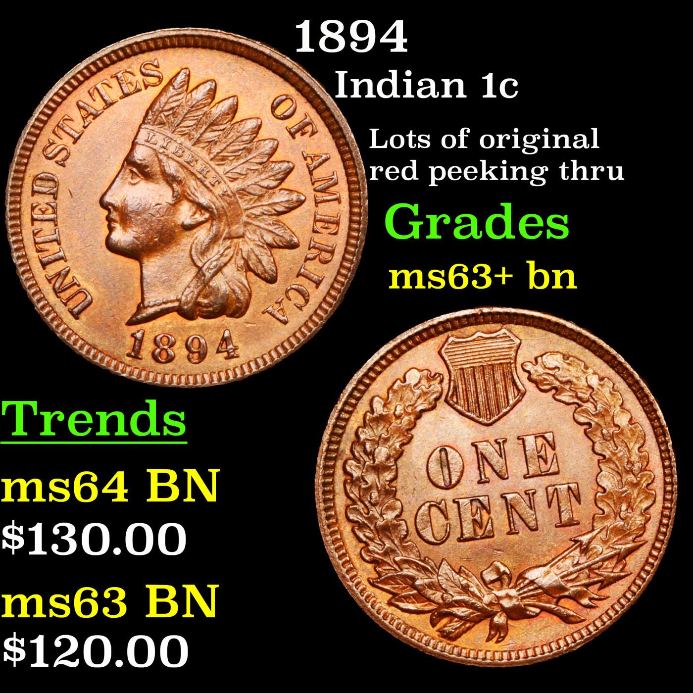 1894 Indian Cent 1c Grades Select+ Unc BN.