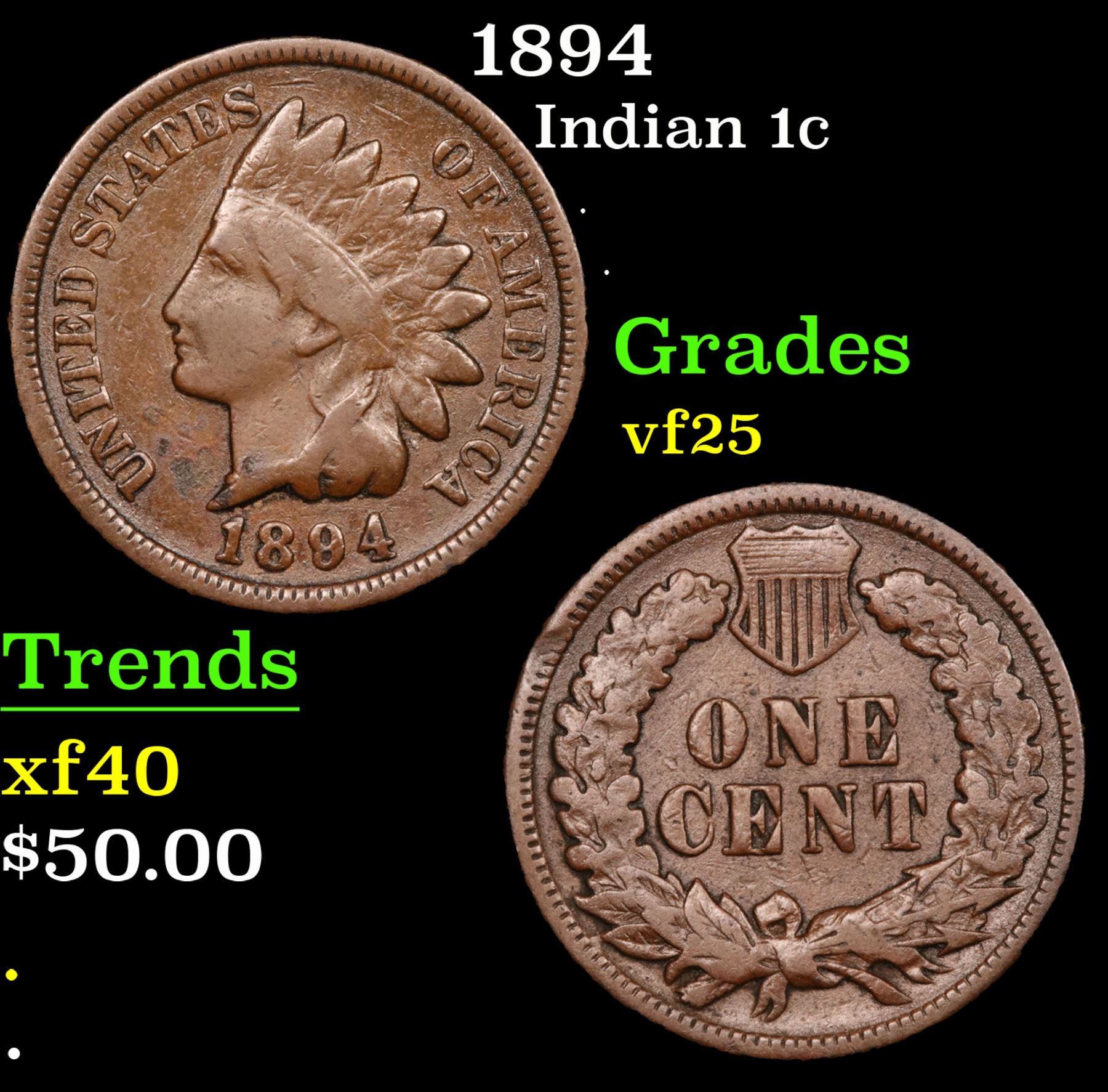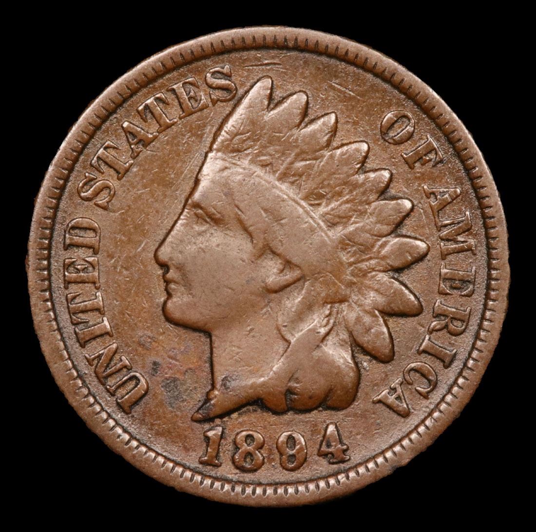 1894 . . Indian Cent 1c Grades vf+.
