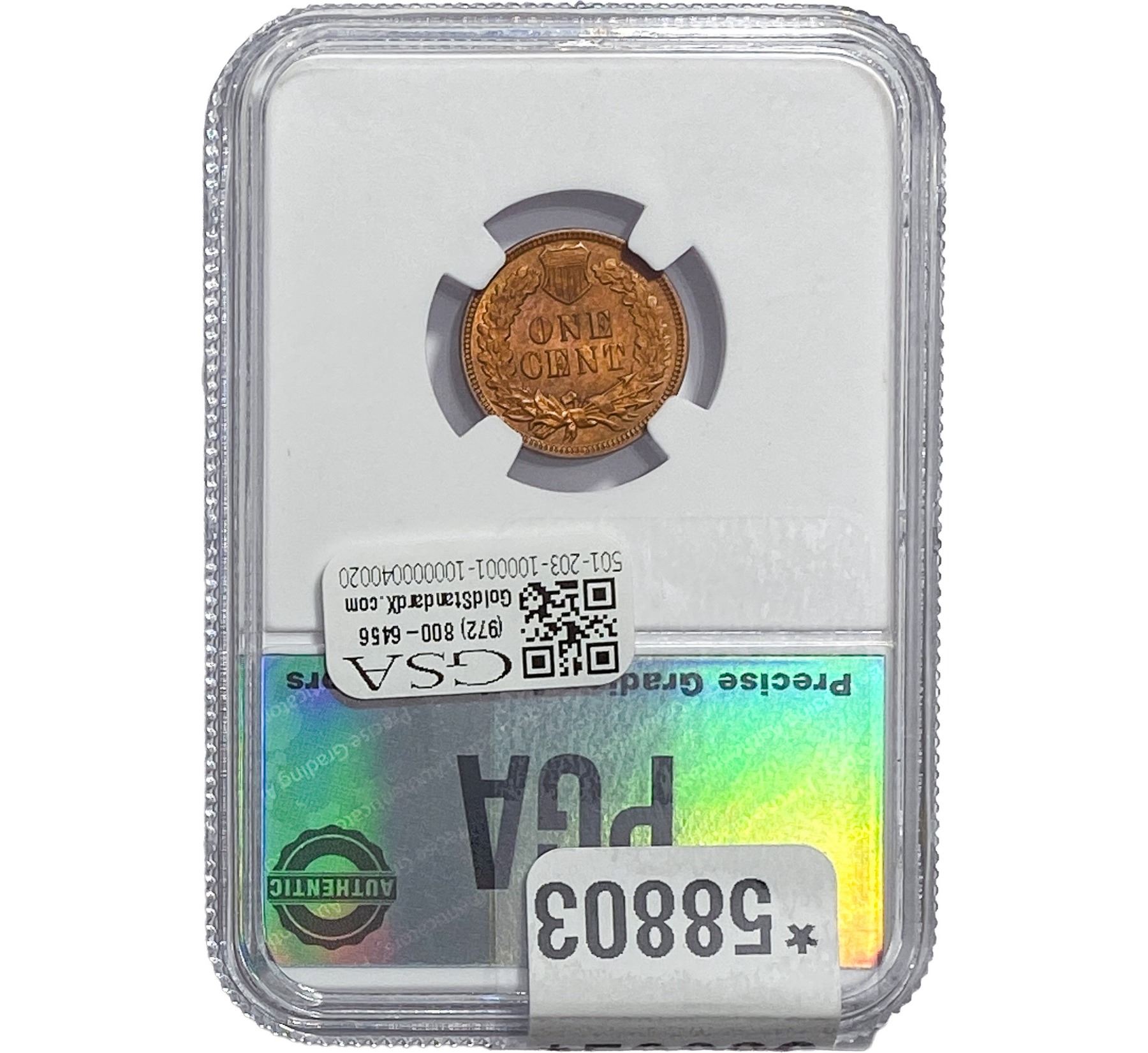 e. Coins sold referencing a third-party grading service are sold “AS IS” without any express or implied warranty, except for a guarantee by GSA that they are genuine. Removal or alteration of the holder, voids all of Bidder’s claims concerning that Product. Certain warranties may be available from the grading services and Bidders are referred to them for further details: Numismatic Guaranty Corporation (NGC), PO Box 4776, Sarasota, FL 34230, www.ngccoin.com/services/writtenguarantee.asp; Professional Coin Grading Services (PCGS), PO Box 9458, Newport Beach, CA 92658, www.pcgs.com/guarantee.html; ANACS, 6555 S. Kenton St., Ste. 303, Englewood, CO 80111; and Independent Coin Grading Co. (ICG), 7901 East Bellview, Ave., Suite 50, Englewood, CO 80111.