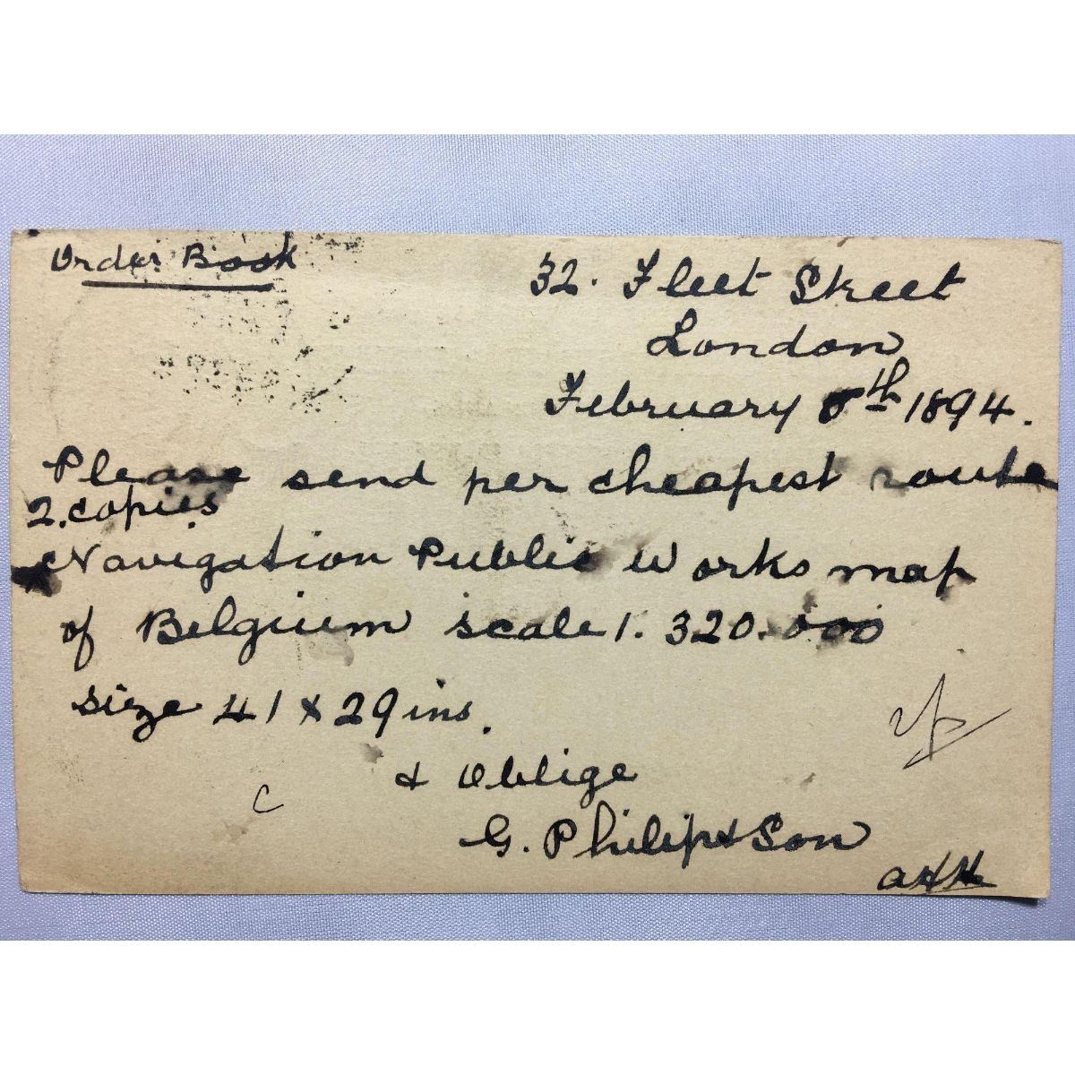 1894 London stamped original iron gall handwritten postcard now in a protective sleeve with a British pennystamp.Â