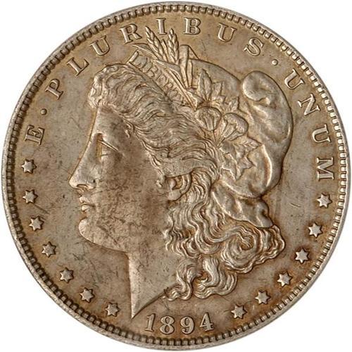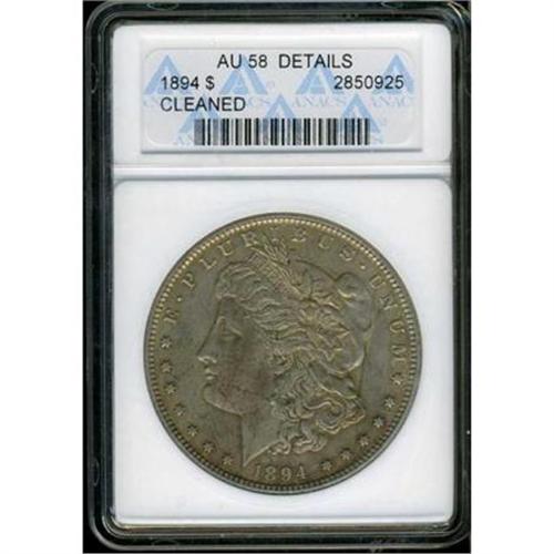 <b>1894 Morgan Dollar. ANACS graded Details of AU58 Cleaned.</b> Well struck and the definitive cleaned-and-retoned silver dollar, with uneven gray-brown hues over both sides. This matters little, however, since 1894 has a low mintage and is considered very scarce in all higher grades <b>(PCGS # 7228)</b> <i>