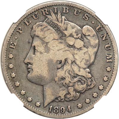 1894 Morgan Dollar. NGC graded VG-8. Toned (PCGS # 7228) .