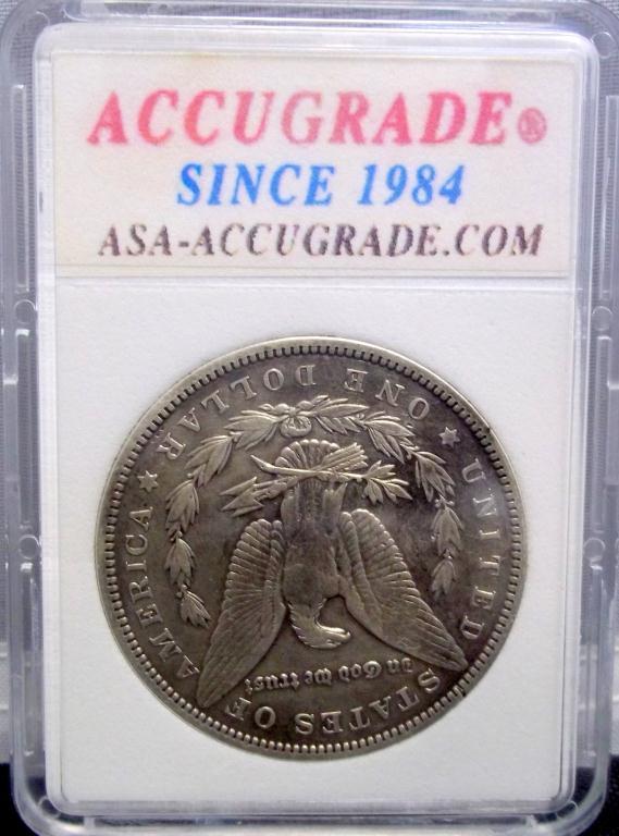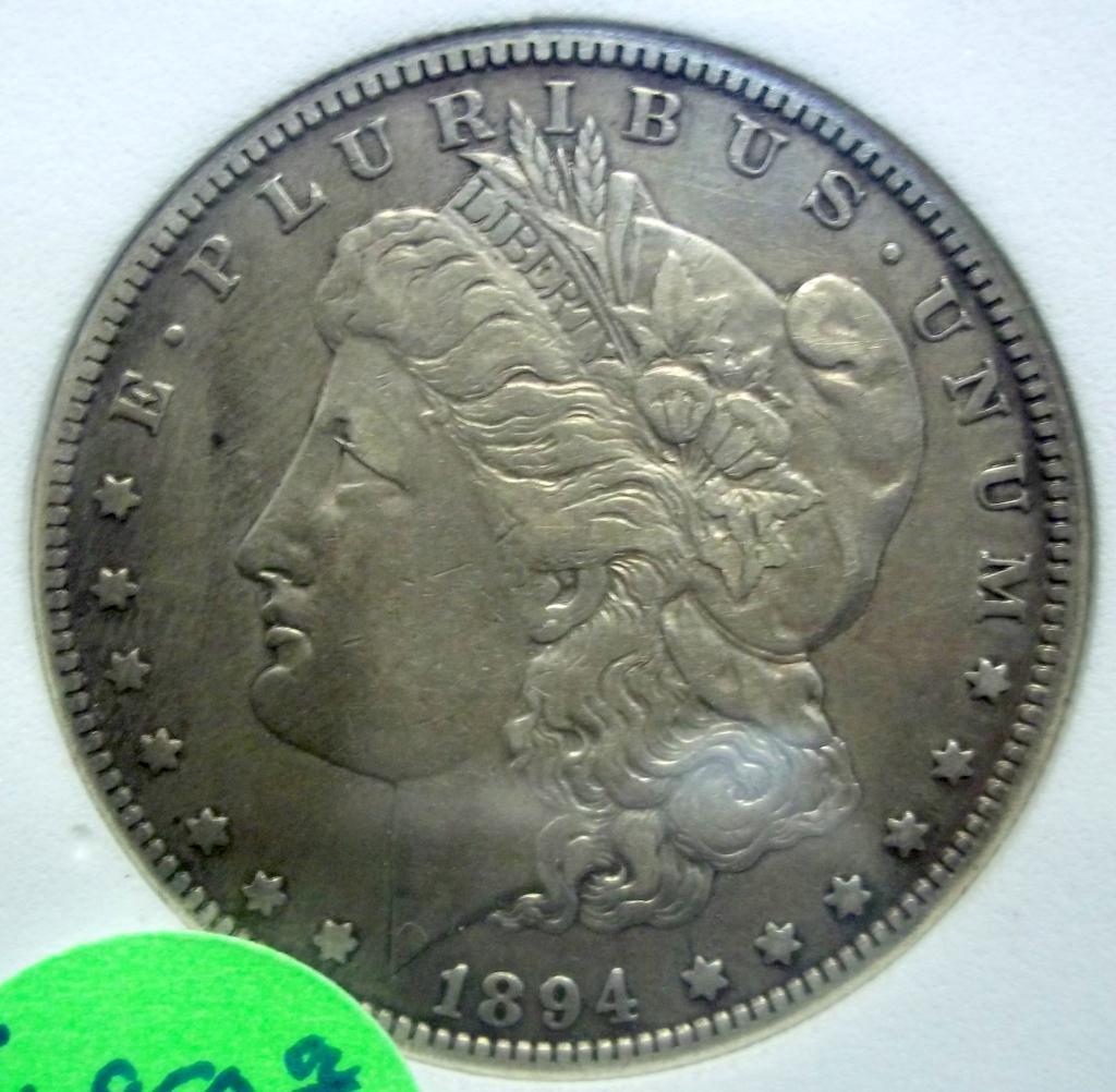 Key Date low mintage 1894 Philadelphia Mint Morgan Silver Dollar, Accugrade certified, and graded Extremely Fine-45! With a very low mintage of just 110,972 pieces, this is one of the most difficult to locate coins in the Morgan series.