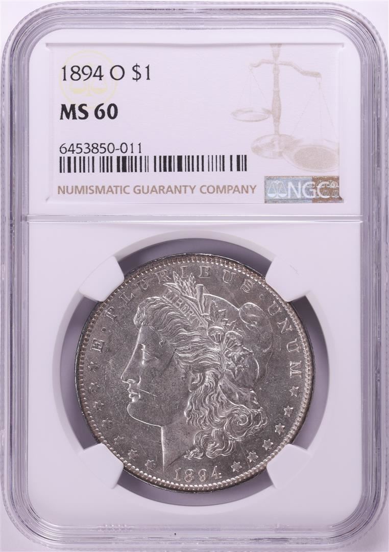 One 1894-O $1 Morgan Silver Dollar Coin NGC MS60. NGC Certified.