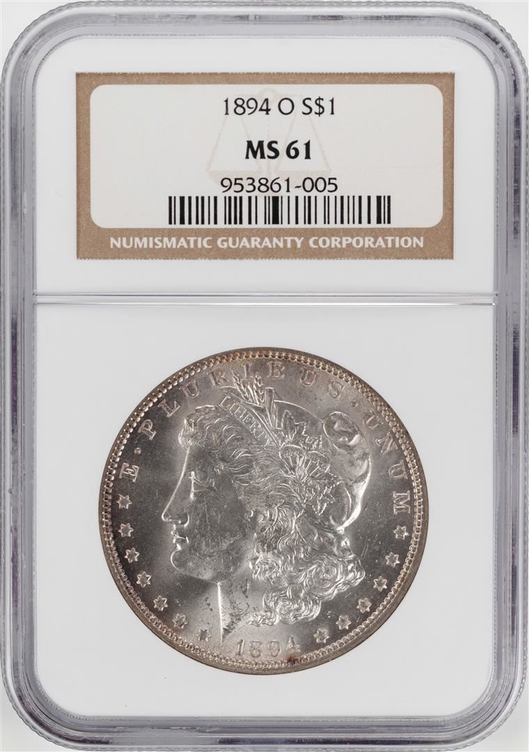 One 1894-O $1 Morgan Silver Dollar Coin NGC MS61. NGC Certified.