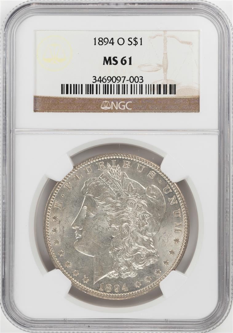 One 1894-O $1 Morgan Silver Dollar Coin NGC MS61. NGC Certified.