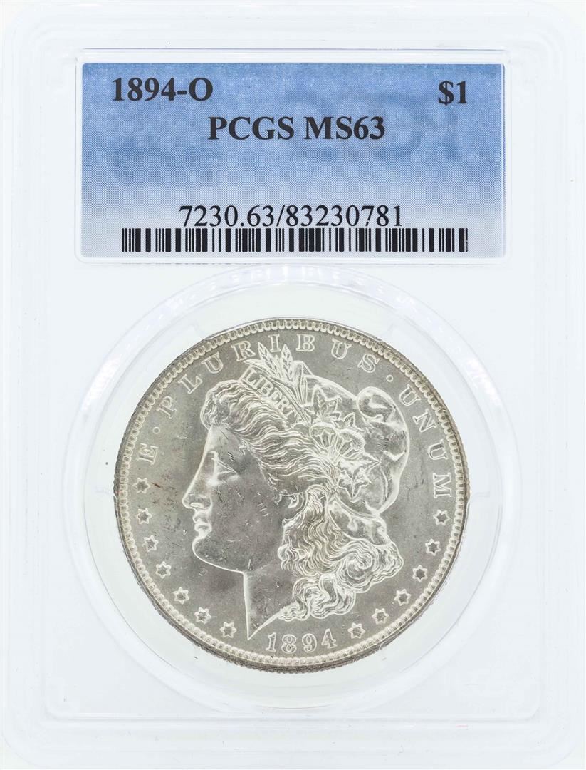 One 1894-O $1 Morgan Silver Dollar Coin PCGS MS63. PCGS Graded.