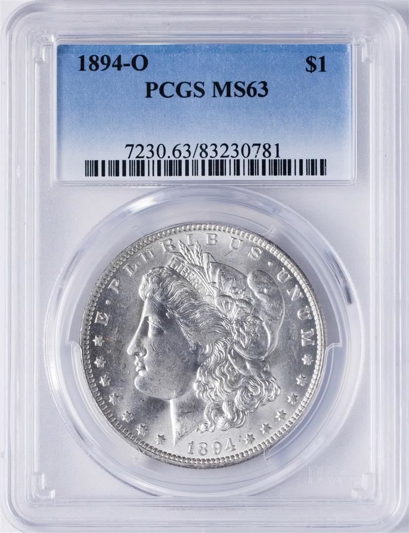 One 1894-O $1 Morgan Silver Dollar Coin PCGS MS63. PCGS Graded.