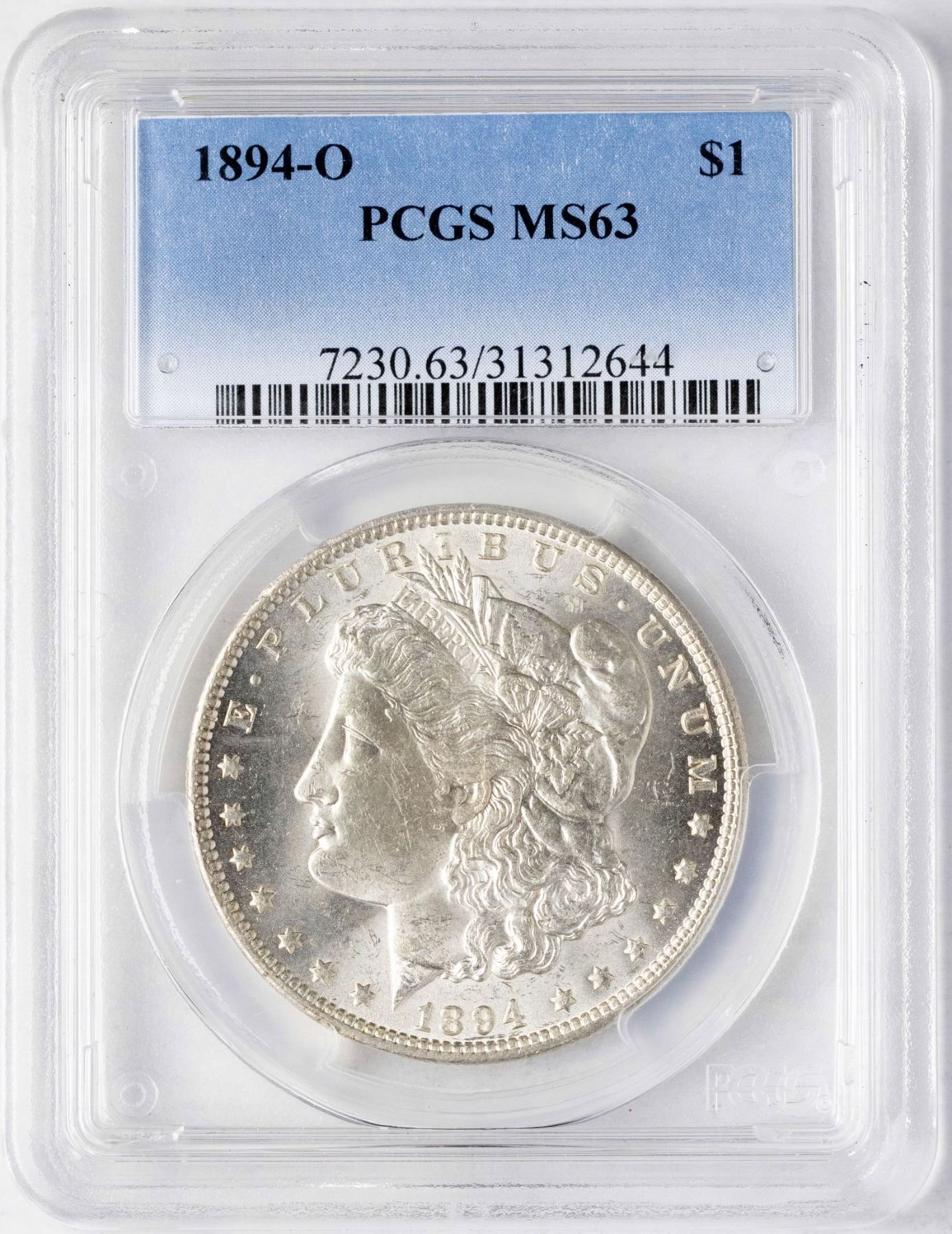One 1894-O $1 Morgan Silver Dollar Coin PCGS MS63.