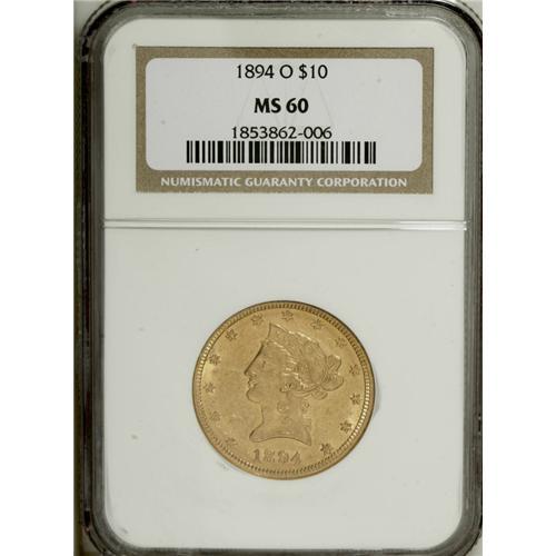 1894-O $10 MS60 NGC. The 1894-O is actually scarcer in