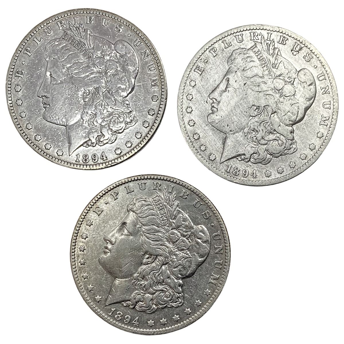1894-O, 1894-S Key Date Morgan Silver Dollar [3 Coins]