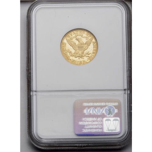 <B>1894-O<$5> MS60 NGC.</B></I> A fully lustrous Mint State example at the very basic level. The surfaces are noticeably abraded, and yet there is no trace of wear on this scarce date example. Only 16,600 coins were minted and Mint State survivors are not frequently encountered. Census: 24 in 60, 63 finer (4/06).