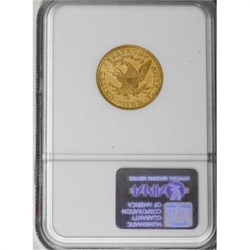 <B>1894-O $5 MS61 NGC.</B></I> An unworn representative from the last of three With Motto half eagle issues struck at the New Orleans Mint. The orange-gold surfaces have modestly reflective luster, and the devices have uncommonly strong detail, particularly on the eagle's often-weak legs. Scattered abrasions account for the grade.<BR><BR><B>Coin Engraver:</B> Christian Gobrecht<BR><BR><b>Shipping:</b> Coins & Currency (<a target="_blank" href="http://www.heritageauctions.com/common/shipping.php">view shipping information</a>\)