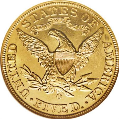 <B>1894-O $5 MS63 NGC.</B></I> Although the New Orleans Mint struck several ten dollar issues after 1894, the 1894-O was the final half eagle from the Southern facility aside from the rare 1909-O. The 1894-O is also rare, with less than half the mintage of the 1909-O, but demand is less because the length of the Liberty five series deters most collectors. When found, the 1894-O typically grades AU55 to MS61. However, the present superior example has pleasing luster and surprisingly few marks. The cheek is particularly smooth. The borders are well struck, although the curls near the ear are slightly soft, as are the claws and fletchings. Census: 2 in 63, 0 finer (8/07).<BR><BR><B>Coin Engraver:</B> Christian Gobrecht<BR><BR><b>Shipping:</b> Coins & Currency (<a target="_blank" href="http://www.heritageauctions.com/common/shipping.php">view shipping information</a>)