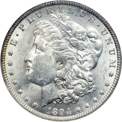 1894-O Morgan Dollar. NGC graded MS-60. Frosty and mostly untoned with minor weakness in the strike but oceans of rolling luster throughout. A scarcer year within this series (PCGS # 7230).