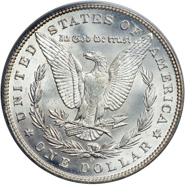 1894-O Morgan Dollar. PCGS graded MS-64. A lovely white example. This date qualifies as being all but unobtainable as a Gem, the 1894-O being one of the premier Morgan Dollar rarities in the finer Mint State grades. Granted, 1.7 million coins were produced; yet locating an attractive representative is anything but easy. Most coins are plagued by poor striking mainly in the centers. Also the luster quality tends to be sub-par for the type. This lovely MS64, while not a fully struck coin at the centers, has all other features save for those usually associated with O-mint issues bold. Even the focal points are not all that softly impressed. The luster is vibrant with a frosty, serene finish. Silvery radiance dominates on this smooth, high end example. Pop 279; 33 in 64+, 10 in 65 (PCGS # 7230) .
