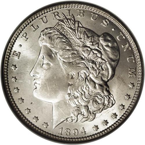 <B>1894-O<img border='0' src='http://www.heritagecoins.com/images/star.gif' width=10 height=10>$1> MS64 NGC.</B></I> This is an enigmatic issue. Writing in 1993, Bowers states that, according to Wayne Miller, "groups of 20 to 100 coins (one to five rolls) were common" in the 1970s. Shortly thereafter, the former author notes that "in Mint State, the 1894-O is rare." Apparently, the growing popularity of Morgan dollars that the hobby has witnessed over the past several decades has pushed demand for Mint State '94-O dollars above the supply. In addition to having a limited population in Mint State, this issue is plagued by striking softness. Many examples, the present Choice quality survivor included, are bluntly struck over the central highpoints. Nevertheless, it is a conditionally scarce representative with bright, completely untoned features. The only singularly mentionable abrasions are located below Liberty's eye, and the luster is frosty in texture with lovely cartwheel visual effects. Census: 161 in 64, 5 finer (4/06).