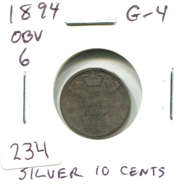 1894 Obverse 6 Victorian Silver 10 Cents. G-4. Readable Date.