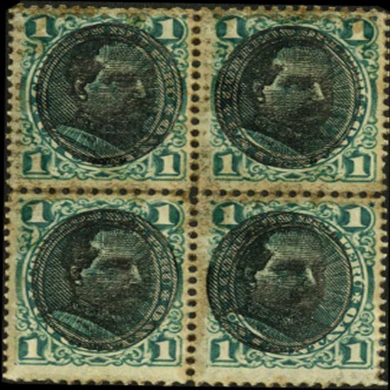 Mint; LH w/ 2 NH scarce mint block of 4 no hidden flaws; Shifted overprint; SC-119