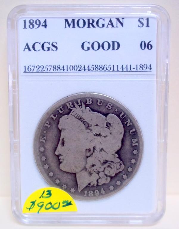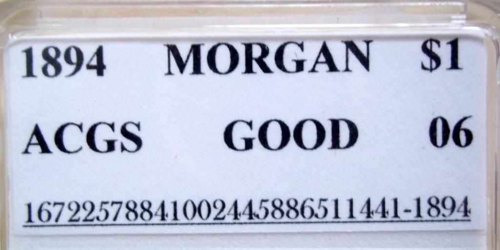 Key Date 1894 Philadelphia Mint Morgan Dollar ACGS Certified Good-06. This is a low mintage coin with only 110,972 coins produced!
