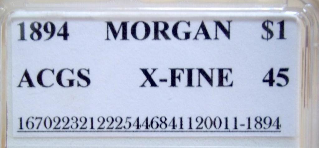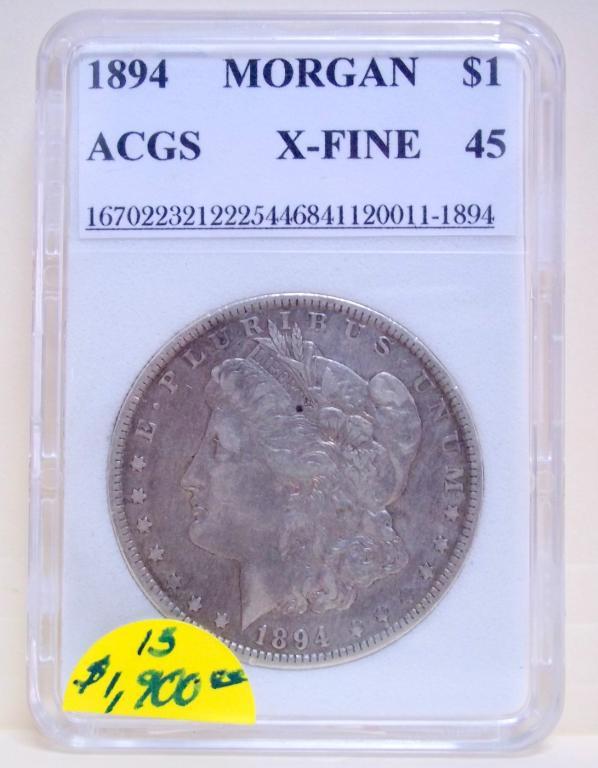 Key Date 1894 Philadelphia Mint Morgan Dollar ACGS Certified Extremely Fine-45. This is a low mintage coin with only 110,972 coins produced and is very difficult to find in higher grades!