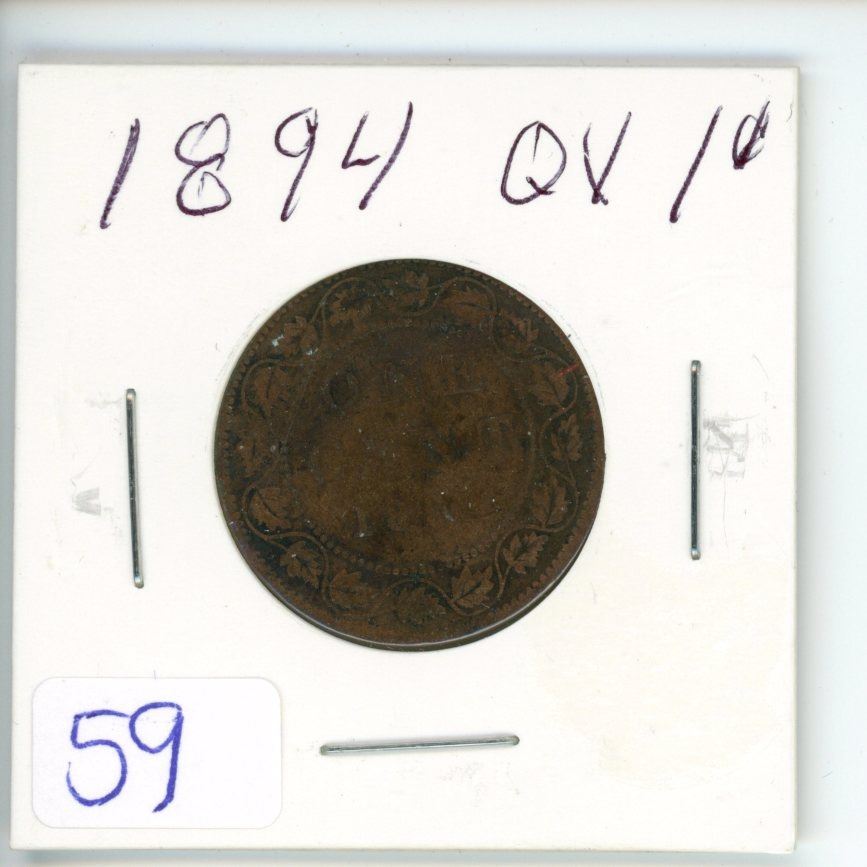 1894 Q.V. large 1¢ coin