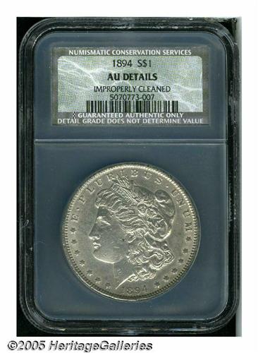 1894 S$1 AU Details, Improperly Cleaned, NCS. A s