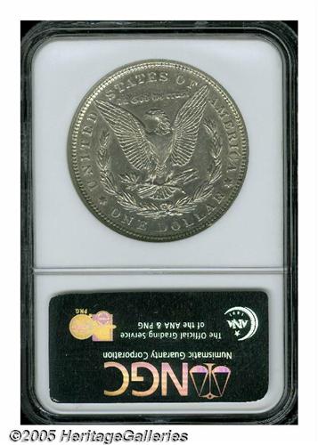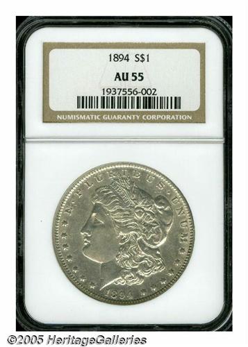 <B>1894<S$1> AU55 NGC.</B></I> Luster glimmers from the margins and device recesses. The centers betray faint wear, but the surfaces are relatively free from obtrusive marks. The mintage is only moderately higher than the more famous 1893-S, but the 1894 is much less costly across all grades.<BR><I>From The Empire State Collection.</B></I>